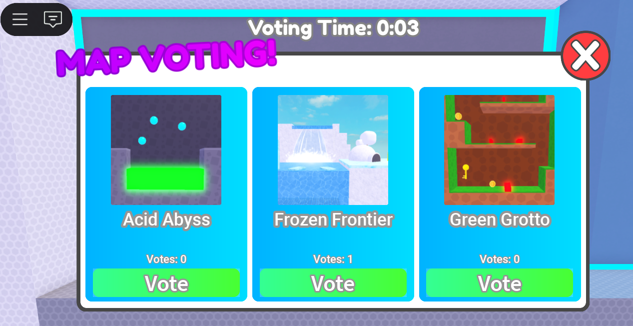 This system allows players to vote for maps before each round. It includes a countdown, vote tracking and automatic map selection. Once voting ends, the round system seamlessly transitions players into the chosen map, managing timers and game logic efficiently.